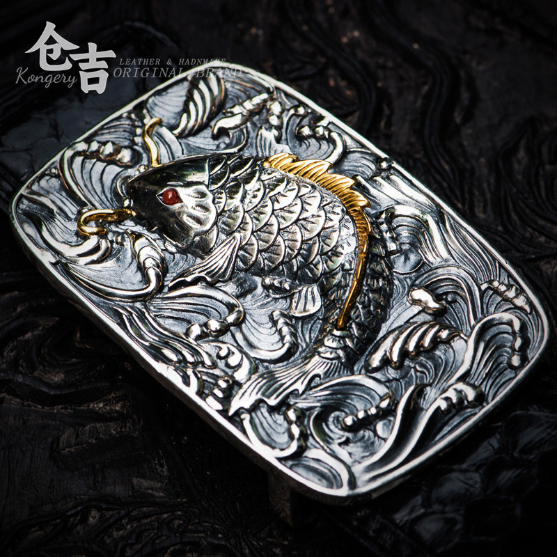 Hamji main serpent ceinture en cuir carpe 925 Sterling Silver Buckle hommes cuir véritable personnalisé ceinture lumière luxe haut de gamme livraison